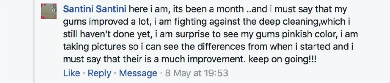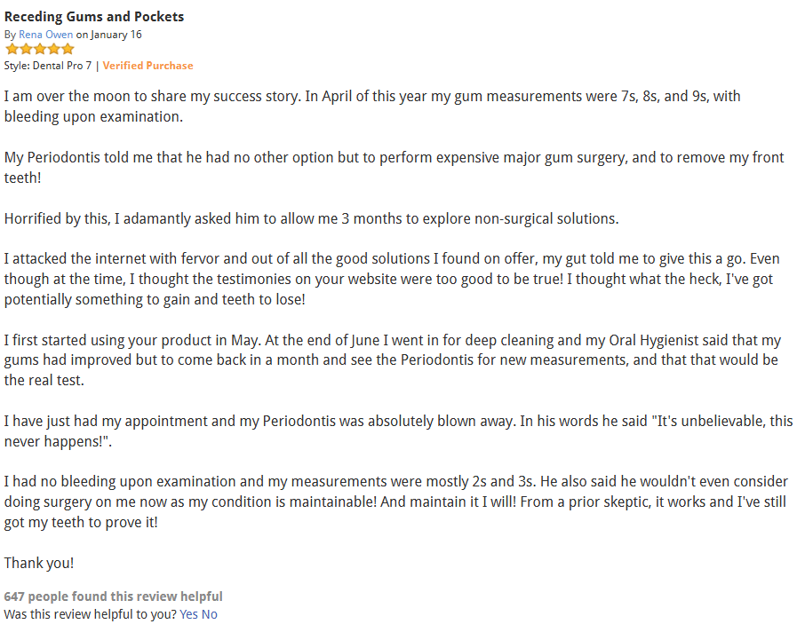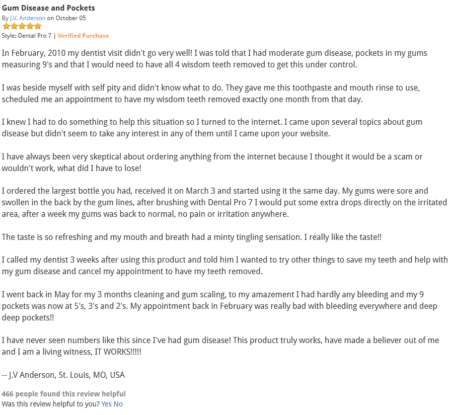 …and as Dental Pro 7 is lipid based, it’s able to effectively penetrate deep down into the gums and NOT WASH AWAY (this is the secret to its great success and the reason why 99% of other products simply don’t work properly)